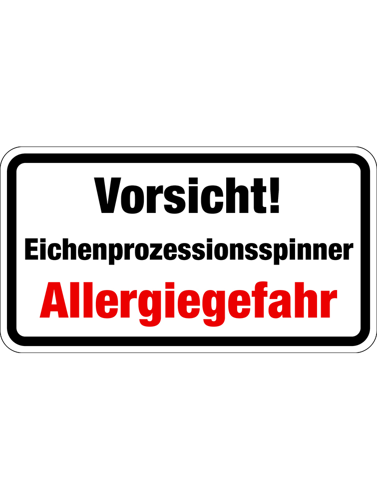 Aufschrift: “Vorsicht! Eichenprozessionsspinner Allergiegefahr!”